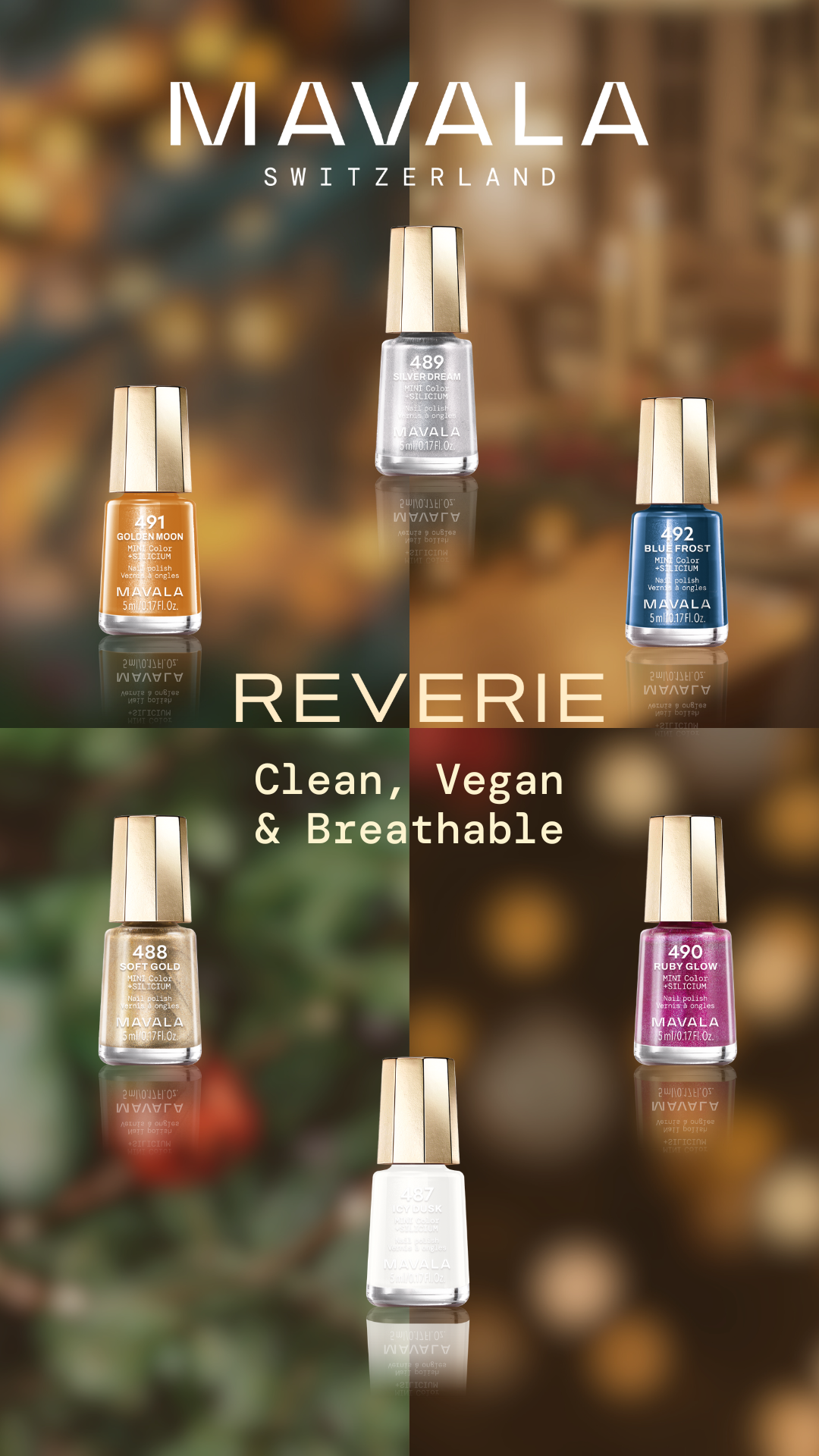 Μπείτε σε έναν μαγευτικό κόσμο με τη REVERIE COLOR’S, τη νέα συλλογή της MAVALA για τις γιορτές του τέλους της χρονιάς, σχεδιασμένη να φωτίσει τα πιο πολύχρωμα όνειρά σας.